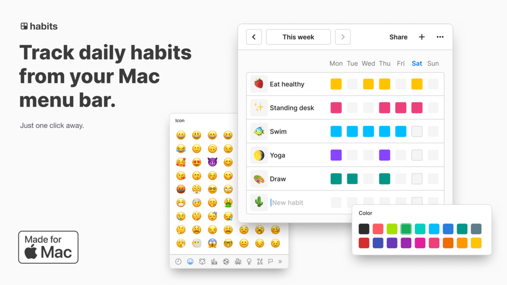 Habits is an app that lives in your Mac's menu bar and helps you keep track of your daily habits.